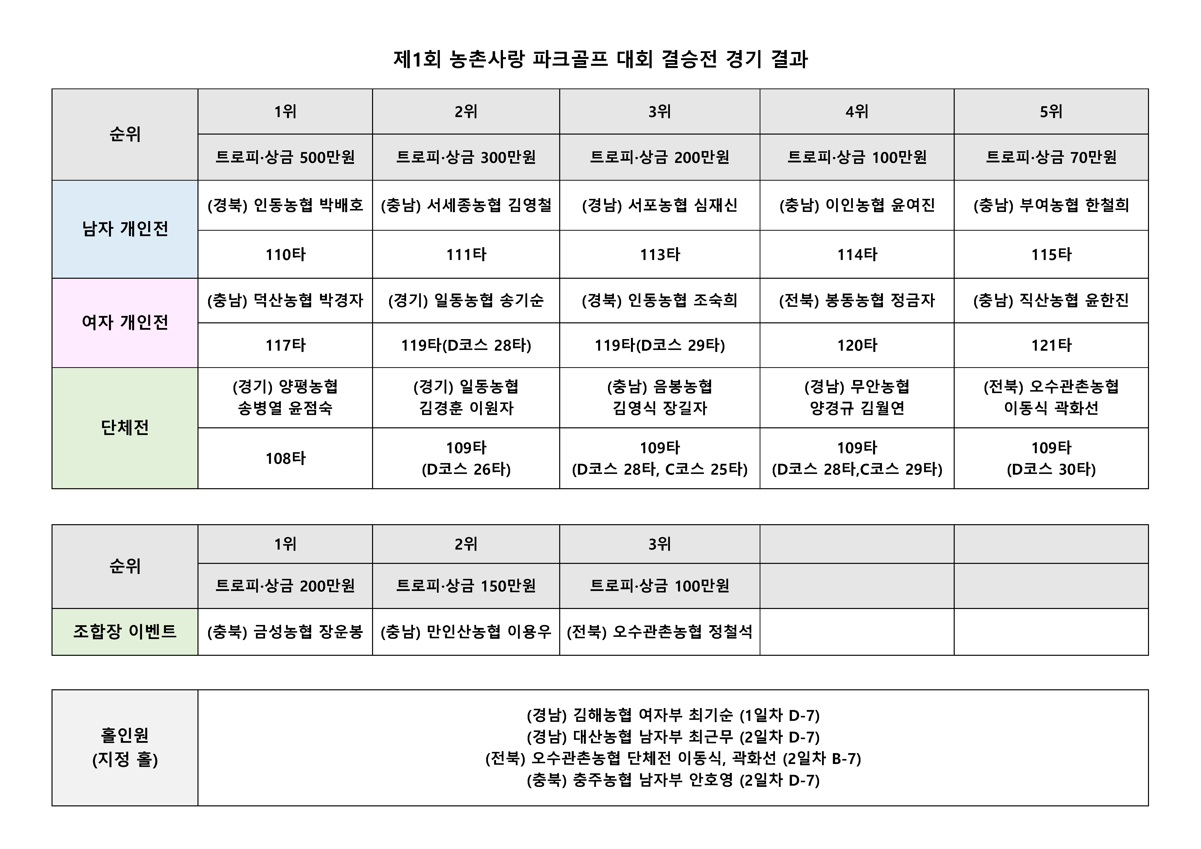 [공지] 제1회 농촌사랑 파크골프 대회 결승전 경기 결과